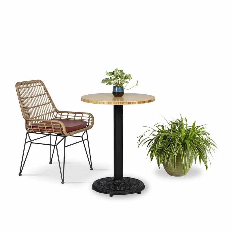 - Bàn cafe với mặt tre tự nhiên thân thiện với môi trường, kết hợp cùng thân sắt ống sơn tĩnh điện và đế chân gang chắc chắn, đảm bảo độ ổn định tuyệt đối.
