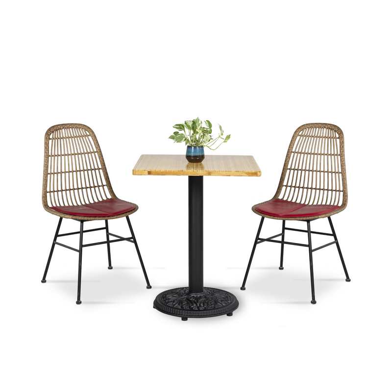 - Ghế cafe được làm từ nhựa giả mây bền bỉ kết hợp với khung sắt sơn tĩnh điện chống gỉ, nệm ngồi simili cao cấp mang lại cảm giác thoải mái tối đa.