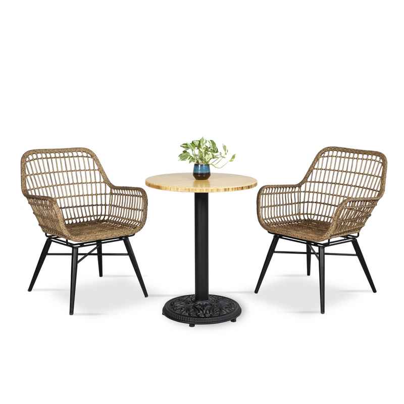 - Ghế cafe được làm từ nhựa giả mây bền bỉ kết hợp với khung sắt sơn tĩnh điện chống gỉ sét.