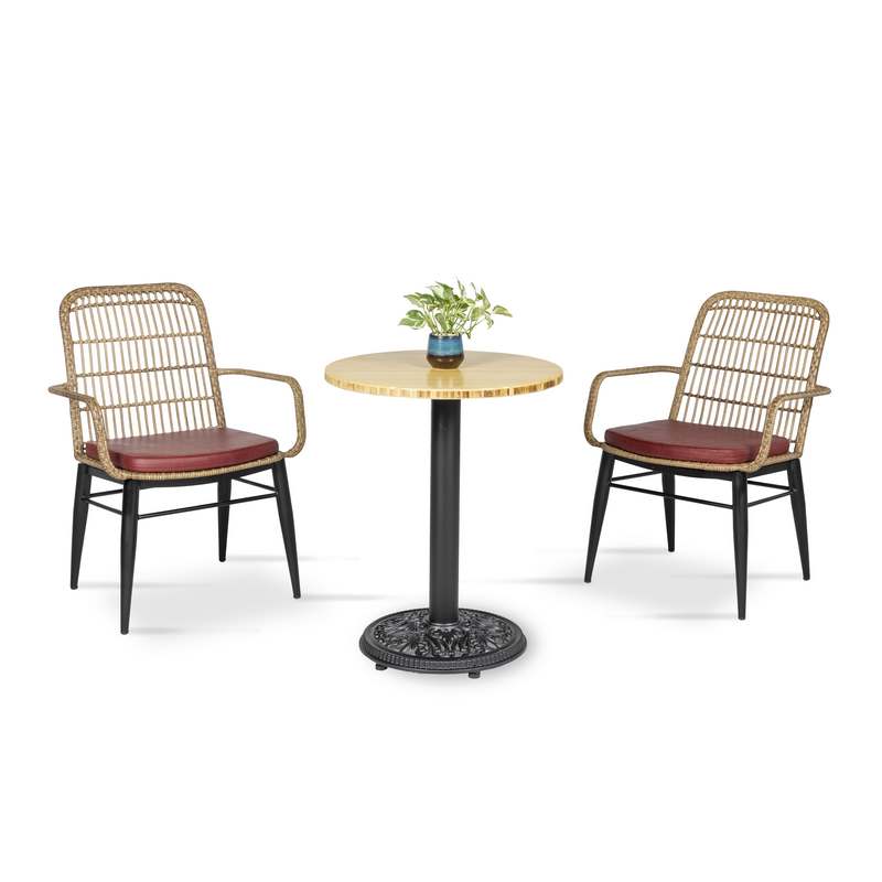 - Ghế cafe được làm từ nhựa giả mây bền đẹp kết hợp với khung sắt sơn tĩnh điện chống gỉ, mang lại độ bền cao và khả năng chịu lực tốt.