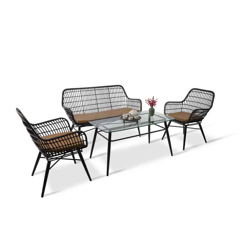 - Bộ bàn ghế cafe sân vườn BGCFDT172 sử dụng nhựa giả mây nâu đen đan khéo léo trên khung sắt sơn tĩnh điện chống gỉ sét.