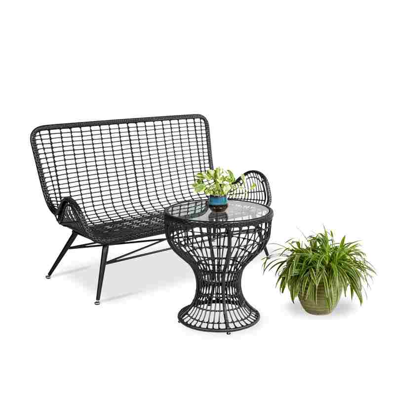 - Chất liệu nhựa giả mây màu nâu đen kết hợp với khung sắt sơn tĩnh điện không chỉ mang lại vẻ đẹp mà còn đảm bảo khả năng chịu được thời tiết khắc nghiệt.