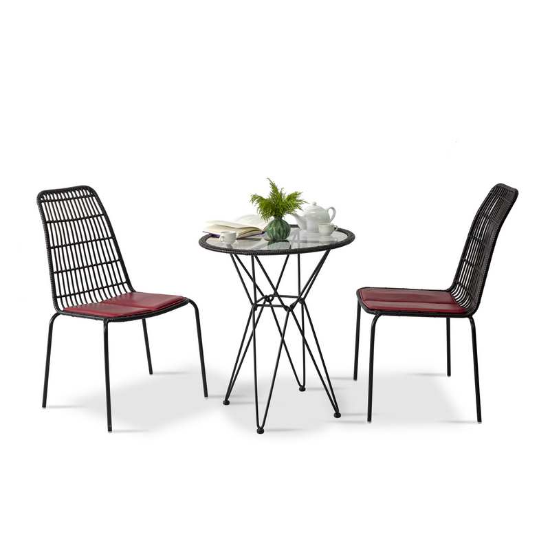 - Ghế cafe được đan từ nhựa giả mây nâu đen kết hợp với khung sắt sơn tĩnh điện, đảm bảo độ bền và khả năng chống gỉ sét vượt trội.