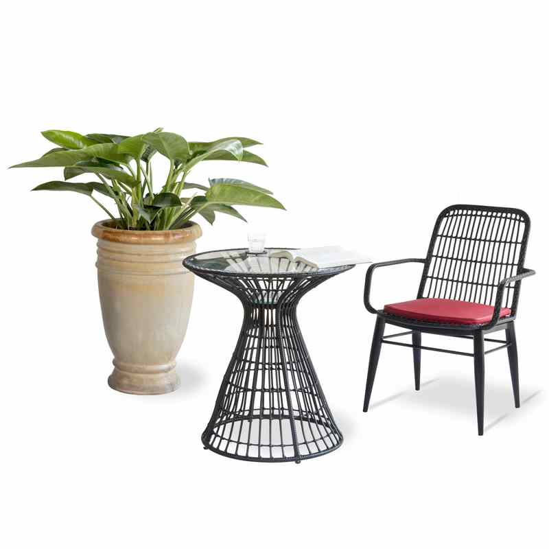 - Đặc biệt, phần đan nhựa giả mây màu nâu đen không chỉ tạo nên vẻ đẹp sang trọng mà còn rất bền bỉ trước các yếu tố thời tiết khắc nghiệt.