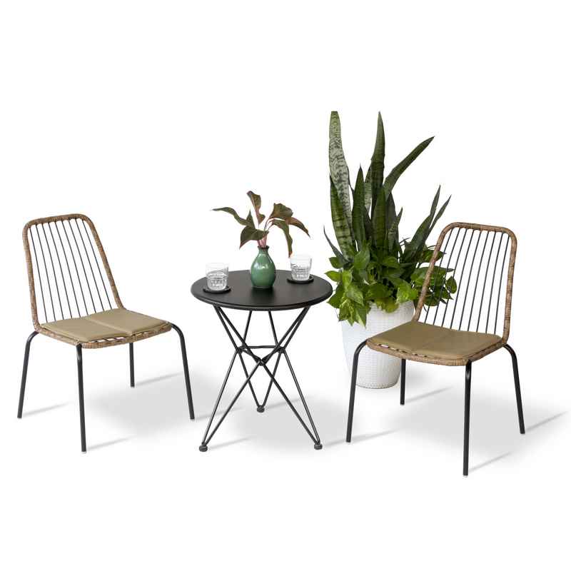 - Ghế cafe được đan viền nhựa giả mây bền đẹp cùng nệm ngồi simili mềm mại, mang lại cảm giác thoải mái tối đa cho người sử dụng.