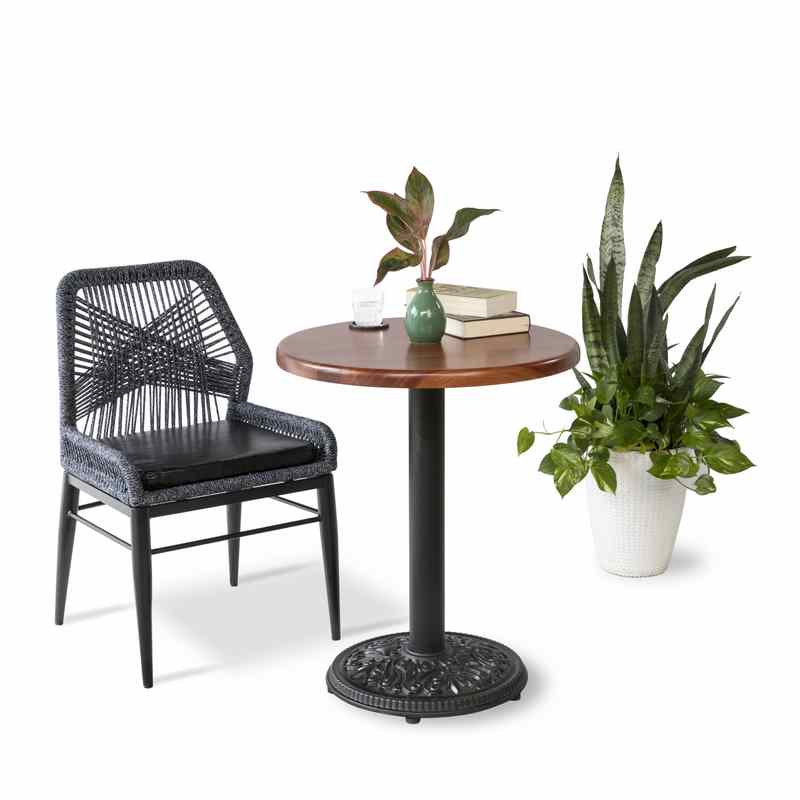 - Bàn cafe sở hữu mặt gỗ xà cừ tự nhiên bền đẹp cùng thân sắt ống vững chắc và đế chân gang ổn định, đảm bảo độ bền lâu dài theo thời gian.