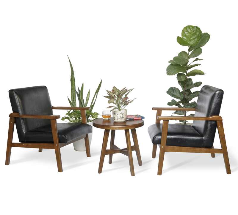 - Ghế cafe được làm từ khung gỗ chắc chắn kết hợp với nệm ngồi simili màu đen cao cấp, mang lại cảm giác thoải mái tối đa khi sử dụng.
