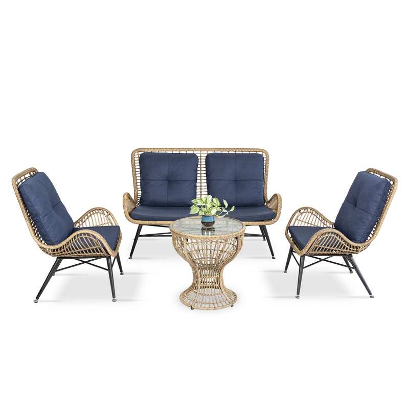 - Sản phẩm được làm từ nhựa giả mây màu vàng bền đẹp, chống chịu thời tiết tốt.