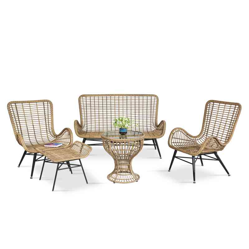 - Ghế được đan bằng nhựa giả mây màu vàng kết hợp với khung sắt sơn tĩnh điện chắc chắn, mang lại độ bền vượt trội cùng vẻ đẹp tinh tế.