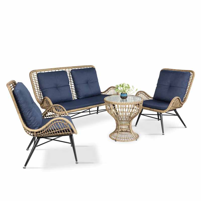 - Bộ sản phẩm bao gồm 2 ghế cafe đơn, 1 ghế sofa băng dài và 1 bàn cafe cup nhỏ, tạo nên một không gian thư giãn lý tưởng cho bất kỳ ai yêu thích sự thoải mái và thẩm mỹ.