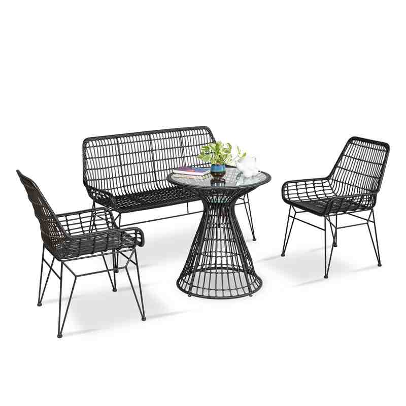 - Ghế cafe được đan từ nhựa giả mây màu nâu đen tạo cảm giác tự nhiên nhưng vẫn đảm bảo độ bền vượt trội.