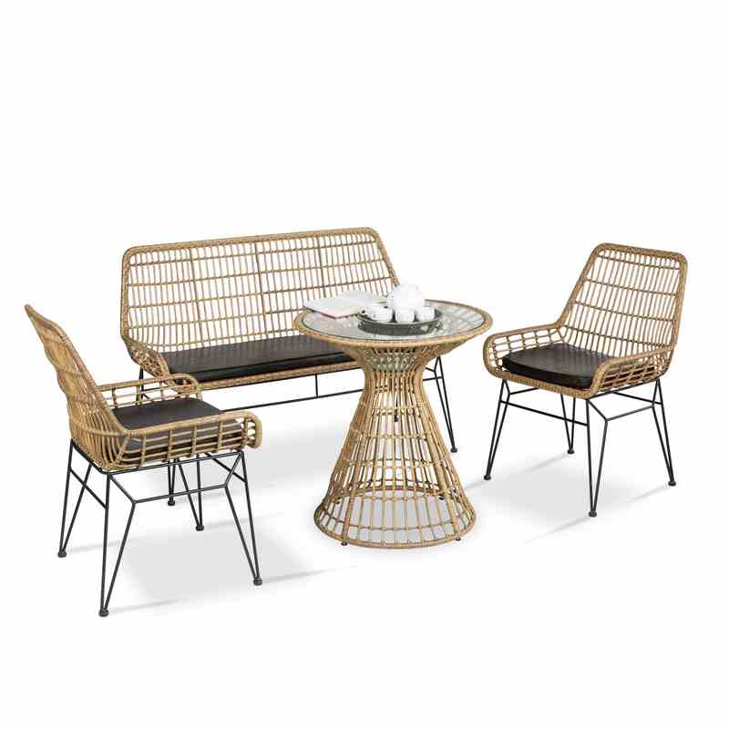 - Bộ bàn ghế cafe giả mây BGCFDT77 được thiết kế với phong cách hiện đại, sang trọng và màu sắc vàng nhã nhặn.
