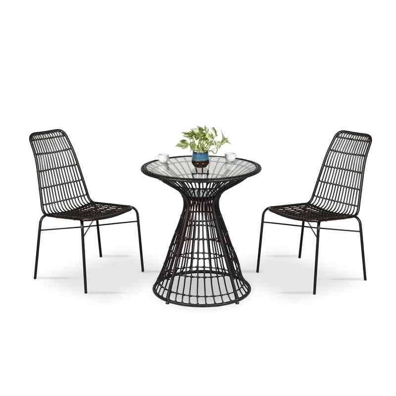 - Ghế được đan từ nhựa giả mây nâu đen bền bỉ kết hợp với khung sắt sơn tĩnh điện chống gỉ, mang lại độ bền vượt trội trước mọi điều kiện thời tiết.
