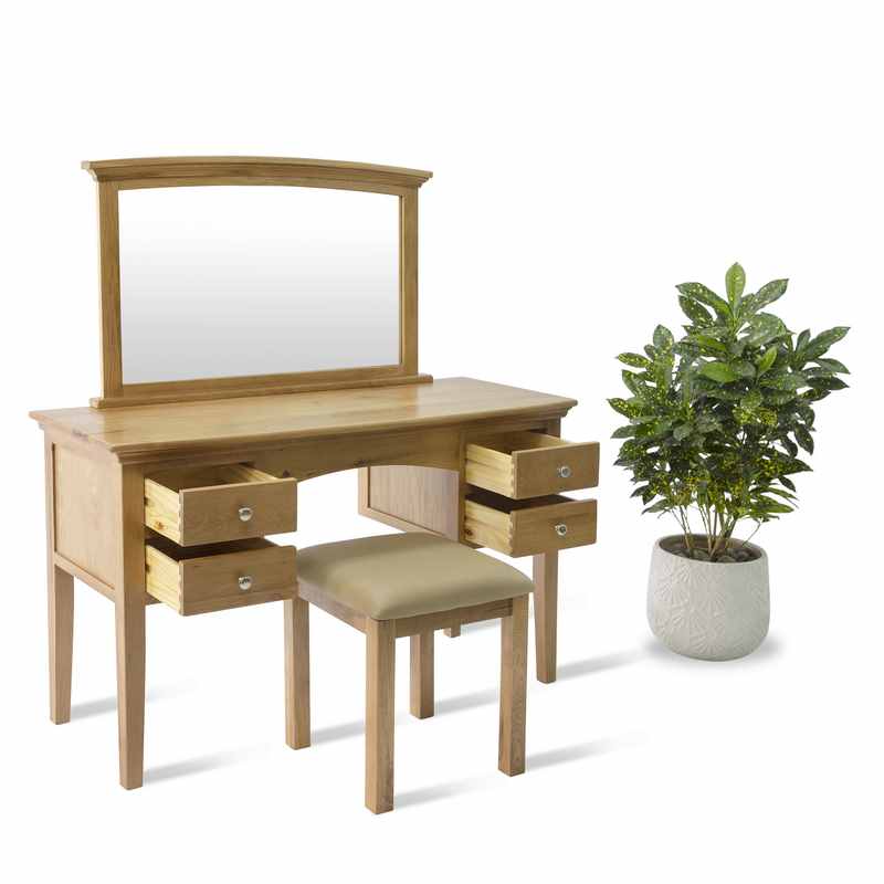 - Sử dụng full gỗ sồi tự nhiên, bàn trang điểm này đảm bảo độ bền vượt trội cùng vẻ đẹp theo thời gian.