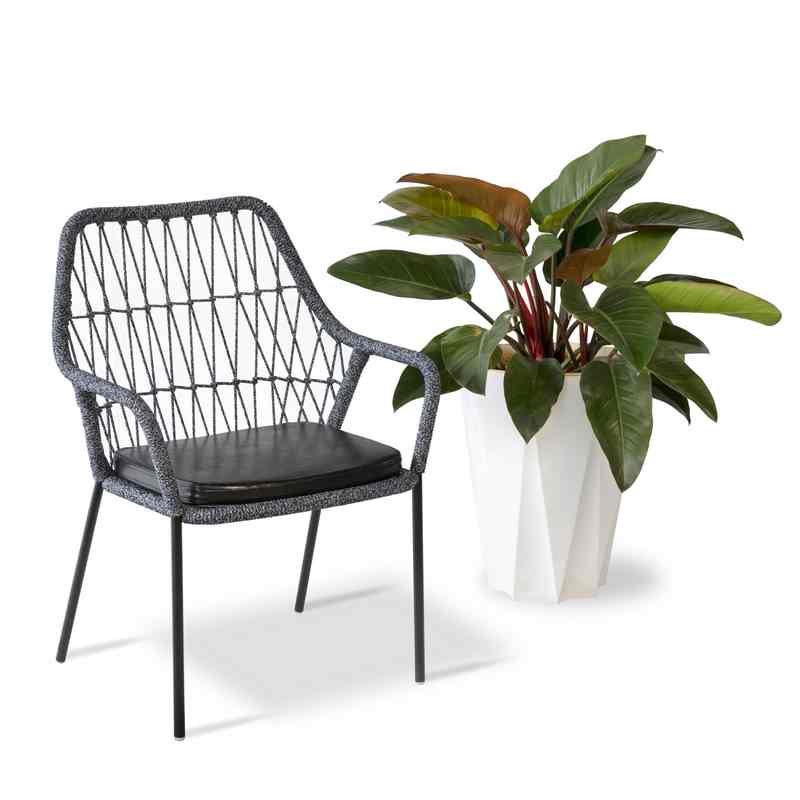 - Ghế cafe đan dây dù GCFDT148 sở hữu thiết kế hiện đại với đường nét tinh tế, dễ dàng hòa hợp với nhiều phong cách trang trí khác nhau.