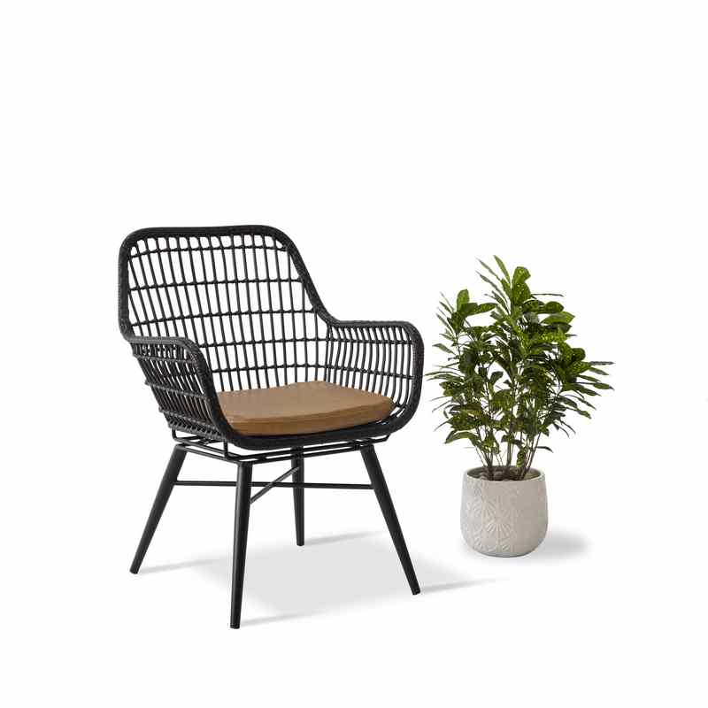 - Được làm từ nhựa giả mây màu nâu đen, ghế dễ dàng phối hợp với nhiều phong cách trang trí khác nhau.