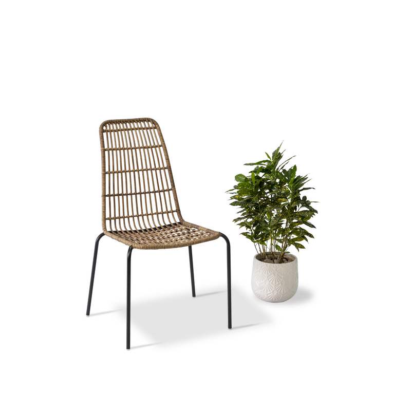 - Ghế được làm từ nhựa giả mây màu vàng tạo cảm giác tự nhiên và thân thiện với môi trường.